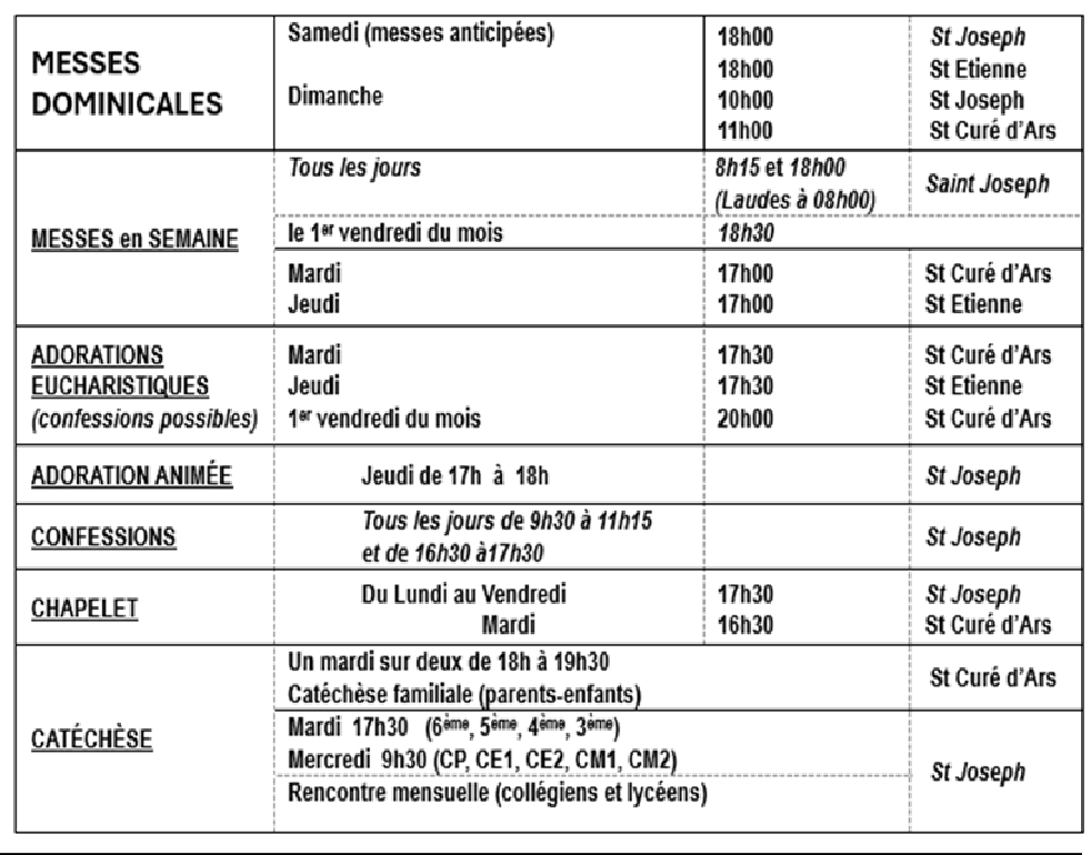 Horaires habituels des offices et activités dans nos églises